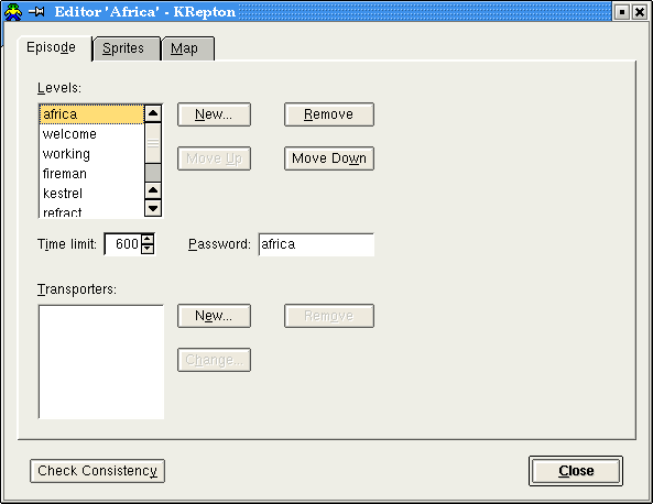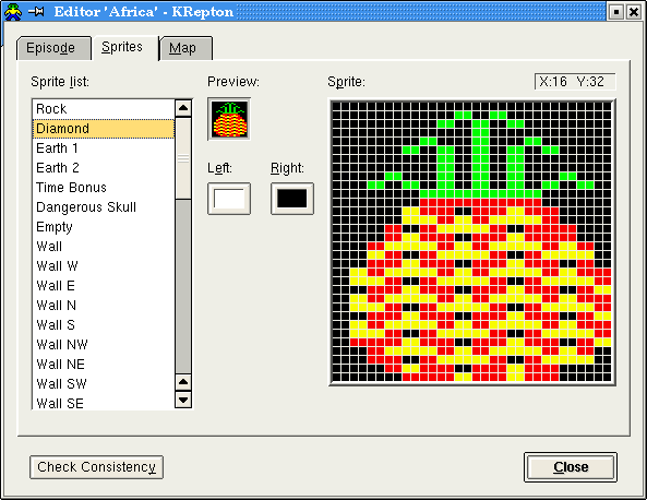 Version 4.1 includes an importer for BBC Repton 3 files, tracking of played levels (so there is no need to remember or write down passwords!), improved game logic, and some fixes to the levels. | KRepton Application (version 4.1) 1.2Mb Compressed Tar archive |