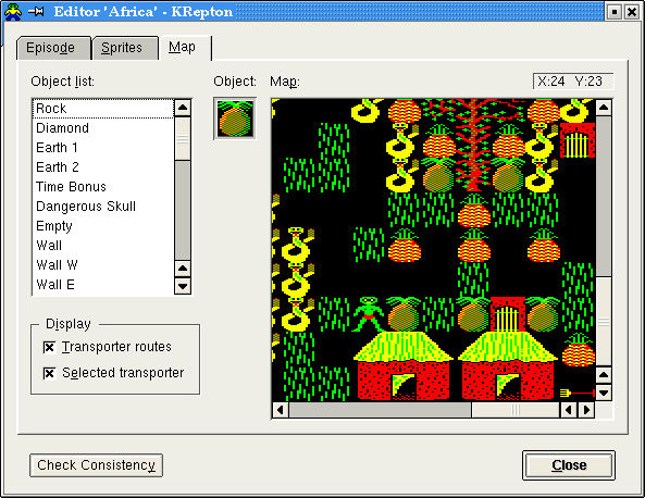 The version 4.0 download includes the combined game player and editor application, and all of the episodes as above. | KRepton Application (version 4.0) 1.1Mb Compressed Tar archive |
