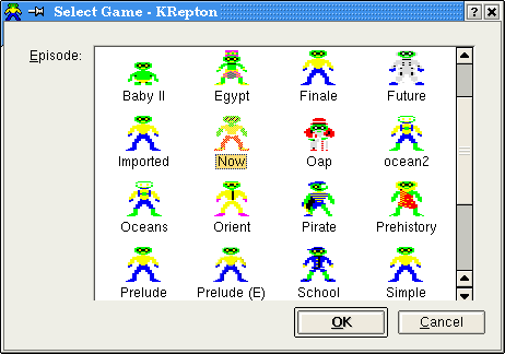 The game download includes the player application and the game episodes. | KRepton Game (version 3.0.1) 1.1Mb Compressed Tar archive |