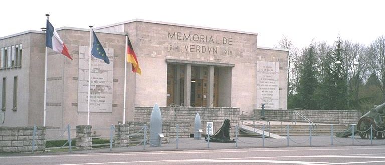 The present-day German border is some 40 km to the east, but in those days the Alsace region had been ceded to Germany (since 1871); as a result of that, a line of forts had been built to close off this natural route into the interior. So it was not surprising that, from February 1916 through to the end of that year, the Germans tried time and time again to break through the French lines and capture the Meuse valley, the hills along its western side being the last natural obstacle before the flat plains to the west. However, the "Great Offensive", like so many of the battles fought along the Allied front here, failed to capture any ground or achieve any decisive results: the line was simply pushed back and forth by first one side then the other, with a total of sixty million shells being fired and half a million killed in those eleven months of fighting. |